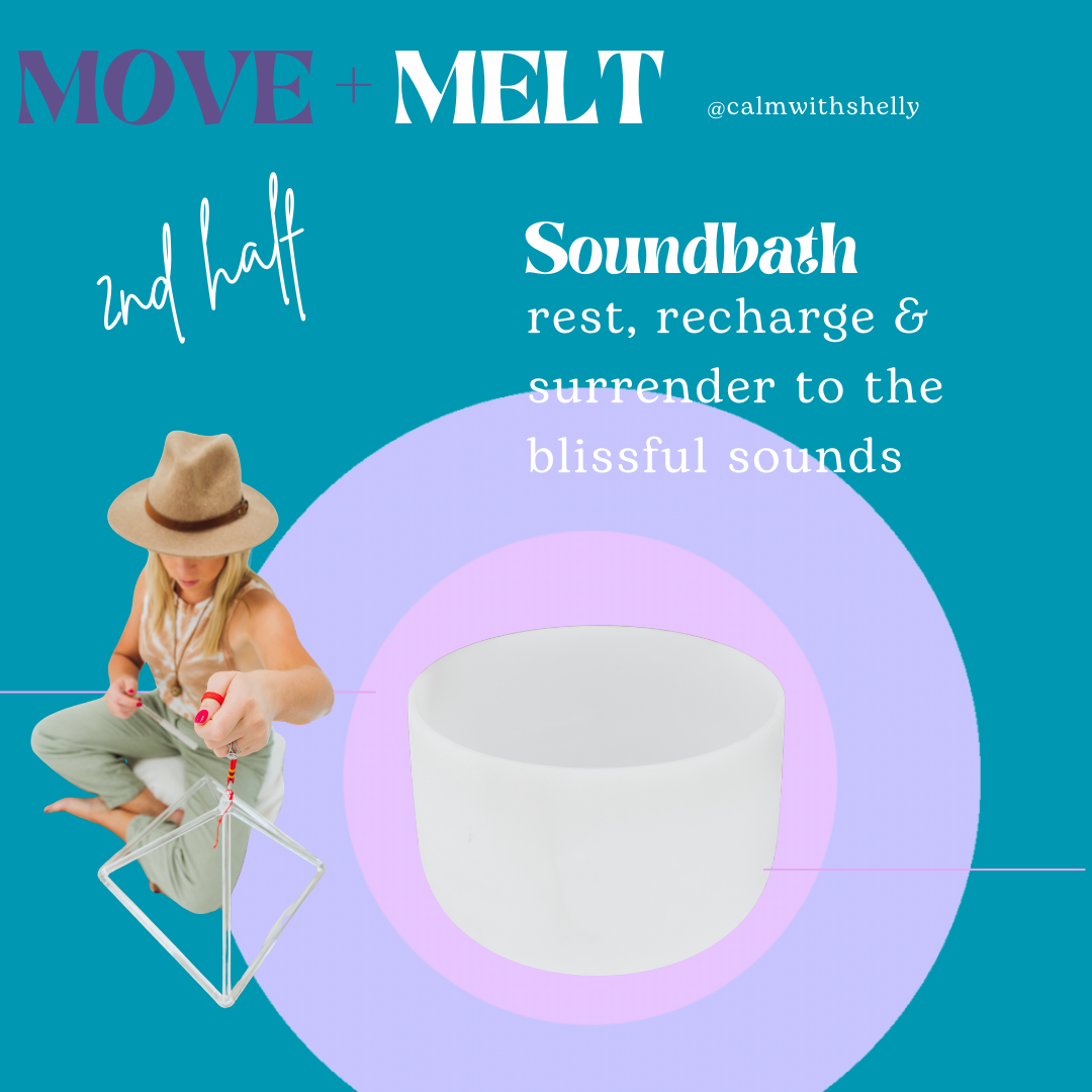 Introducing a signature experience Move & Melt @calmwithshelly ~ A nervous system reset through music, movement and sound to dance the stress out and melt into calm.